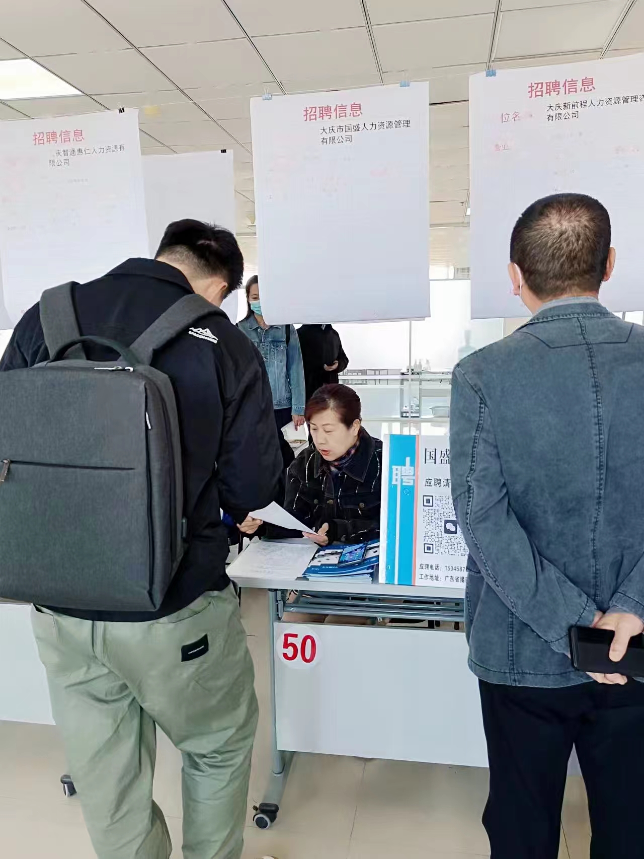 僅大慶國盛人力資源有限公司就接受80余名求職者簡歷,提供近100余人的咨詢服務(wù),發(fā)放企業(yè)宣傳手冊120份。