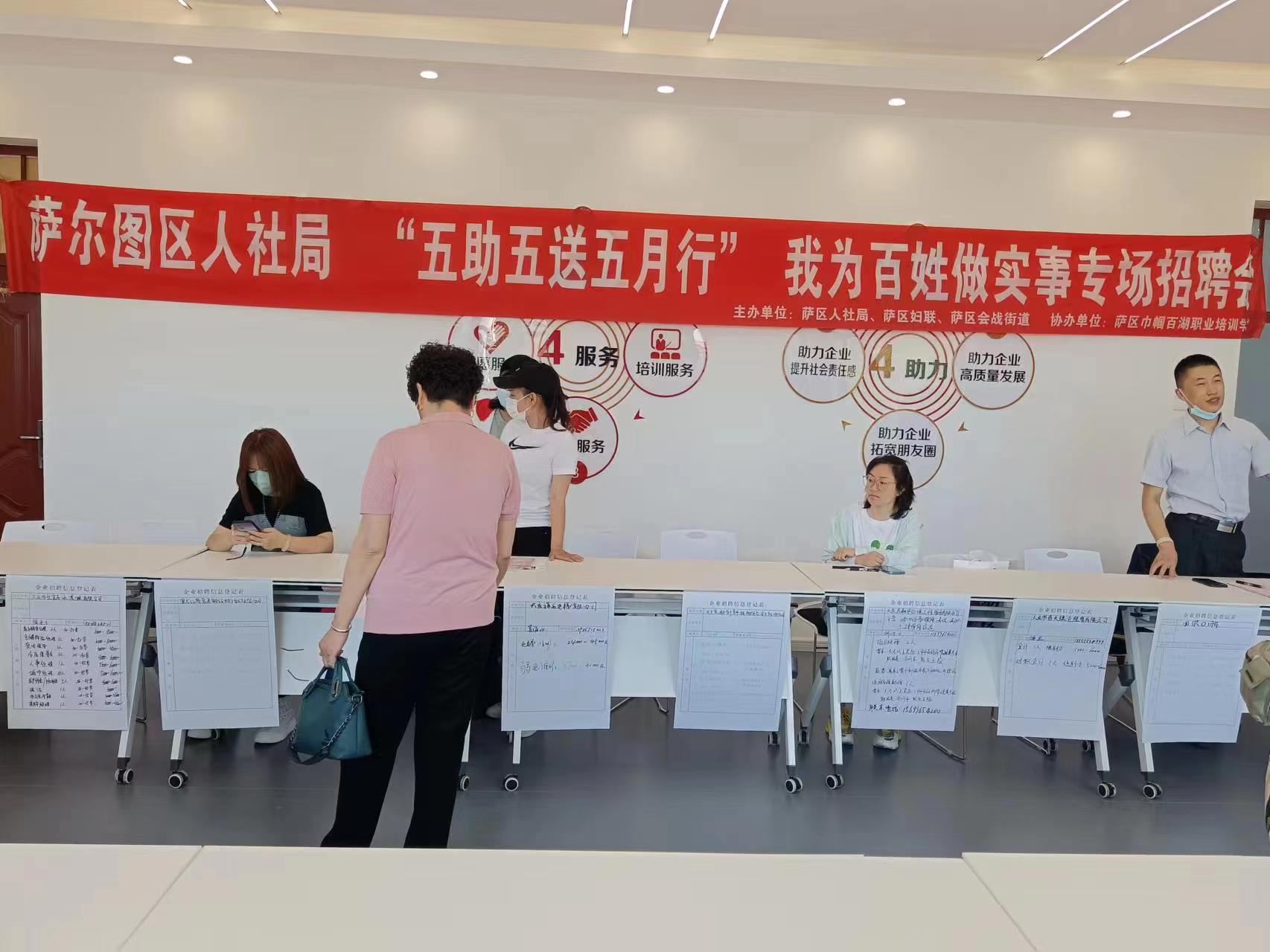 5月24日9:00-11:00時(shí),在薩爾圖區(qū)人才市場(原二十三中二樓)舉行了薩爾圖區(qū)人社局“五助五送五月行”我為百姓做實(shí)事專場招聘會,本次招聘會由薩爾圖區(qū)多家單位聯(lián)合舉辦,共有45家企業(yè)提供就業(yè)崗位50余個(gè)。在本次招聘會中,國盛人力共接待了部分求職者50人次的咨詢,提供了20余個(gè)崗位,其中有25人填寫了個(gè)人求職信息。